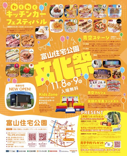 富山住宅公園文化祭の青空マルシェに11月の8,9日10:30~16:00までの両日参加させていただきます。